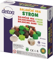 Een worp met de dobbelsteen bepaalt de kleur, de speler kiest het bijbehorende onderdeel en plaatst het op de basis. De boom groeit, de stabiliteit neemt af – en de pret neemt toe. Het spel is geweldig voor oog-handcoördinatie, samenwerking en geduld, maar ook voor solospel.