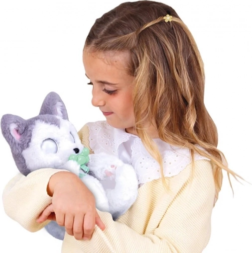 Duik in de wereld van interactief spel met deze schattige pluche huskyhond uit de Psytulaski-collectie. De hond reageert op aanraking en beweging en biedt een authentieke ervaring. Zodra je het speentje uit zijn bekje haalt, opent de husky zijn ogen en begint te blaffen. Het speentje dient niet alleen voor spel, maar ook om het hondje in slaap te helpen, waardoor kinderen leren voor hun huisdier te zorgen en hun verantwoordelijkheidsgevoel ontwikkelen.