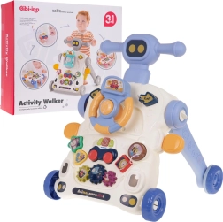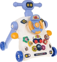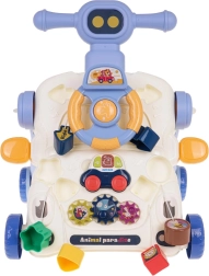Deze multifunctionele looptrainer maakt zowel ouders als kinderen blij: hij dient als steun bij de eerste stapjes en tegelijk als activiteitentafel voor speelse ontwikkeling. Het paneel biedt een stuur met toeter, tandwielen, vormenstoof en een mini basket voor het gooien met een balletje – alles ontworpen om coördinatie, concentratie en motorische vaardigheden te versterken.