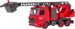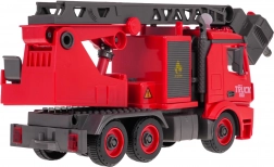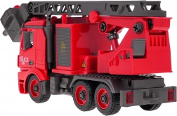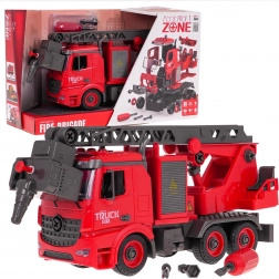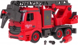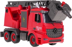 Interactieve schroefbare brandweerwagen met waterfunctie voor kinderen vanaf 3 jaar. De set bevat een schroevendraaier met verwisselbare bits om het voertuig uit elkaar te halen. De brandweerauto heeft voorwielaandrijving. Op het dak van de brandweerauto zitten twee knipperlichten en functionele knoppen. De knoppen activeren alarmsignalen, het starten van het voertuig, achteruitrijden en de claxon. De brandweerladder kan met de hand worden geheven, neergelaten en uitgeschoven. Hij kan ook 360 graden draaien. Na het vullen van het reservoir met water en het indrukken van de knop aan het uiteinde van de brandslang begint er water te spuiten. Het speelgoed werkt op 3 AG13-batterijen (inbegrepen). .. Functies van de brandweerauto: . - geschikt voor kinderen vanaf 3 jaar, .- gemaakt van materialen van de hoogste kwaliteit, .- mogelijkheid om het voertuig te demonteren (schroevendraaier met verwisselbare bits inbegrepen), .- voorwielaandrijving, .- draaibare giek/ladder 360 graden, .- heffen, laten zakken en uitschuiven van de ladder, .- beweegbare slangenmand omhoog en omlaag, .- water spuiten uit de slang, .- lichteffecten in de vorm van knipperlichten op het dak van de cabine, .- geluidseffecten: alarmsignaal, starten van het voertuig, achteruitrijden en claxon. . |