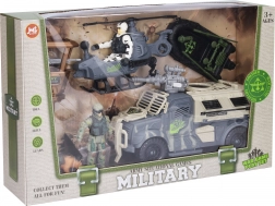 Actieve militaire set voor kleine strategen biedt uren speelplezier op land, in de lucht en op het water. De set bevat een voertuig van 25 cm, soldaatfiguurtjes en veel accessoires. Voor nog meer beleving zorgen licht- en geluidseffecten die worden geactiveerd met de knop op het wapen van het voertuig. Dankzij de vrije wielen rijdt het voertuig soepel en is het klaar voor elke missie.