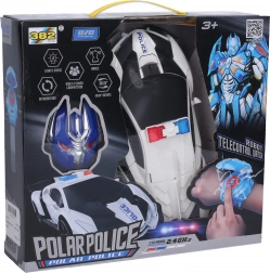 De bediening is intuïtief dankzij het knoppencross, dat zorgt voor beweging van de auto naar voren, achteren, links en rechts. Door op de middelste knop te drukken, vindt de transformatie naar een robot plaats. De linker zijknop maakt het mogelijk om de klep van de bedieningshorloge te openen voor gemakkelijke toegang. De frequentie van 2.4GHz garandeert een stabiele verbinding zonder interferentie.