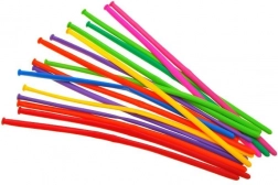 De set bevat een mix van gekleurde ballonnen voor het maken van vormen en decoraties.