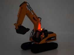 De cabine draait 585°, de arm en giek hebben een volledig bewegingsbereik en de bak kan openen en sluiten. Perfect voor een levensechte simulatie van een echte graafmachine.