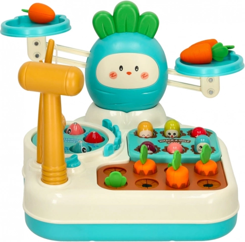 Ontdek het leuke en slimme 4-in-1 speelgoed dat een weegschaal met schaaltjes, een molhamerspel, vissen en worteltjes oogsten combineert. Het ontwikkelt de fijne motoriek, oog-handcoördinatie en de... Meer tonen