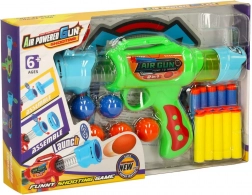 Pistool, schuimkogels ×10, schuimballetjes ×6, uit te knippen schietschijf