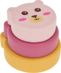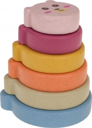- 6 constructie-elementen in de vorm van een beer voor het bouwen van een toren.