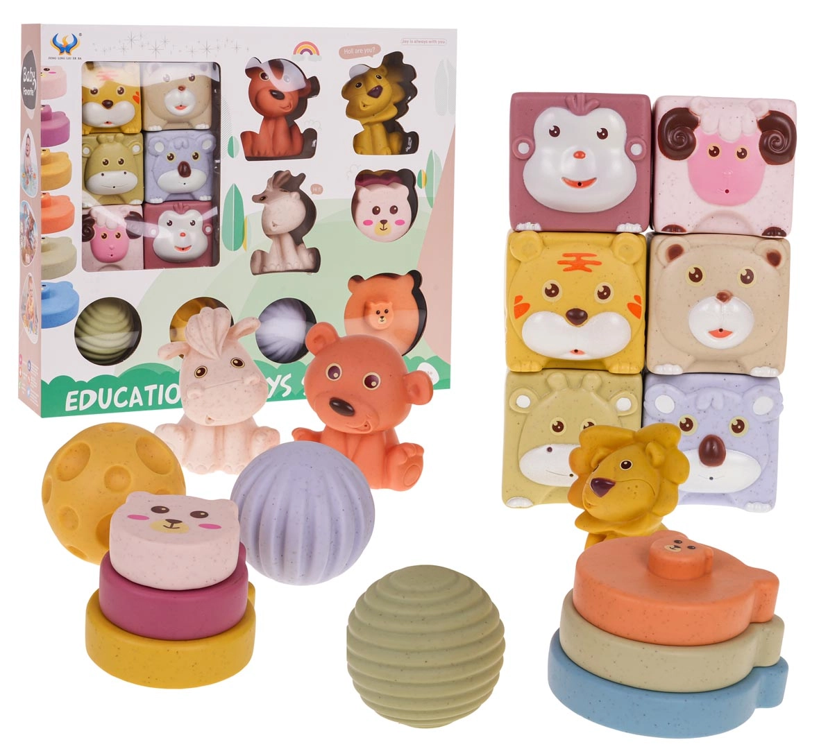 Sensorische blokken met dieren voor kinderen 12 stuks