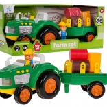 De aanhanger kan gemakkelijk worden losgekoppeld, waardoor er meer speelmogelijkheden zijn. De set bevat ook een boerfiguurtje en pakken stro.