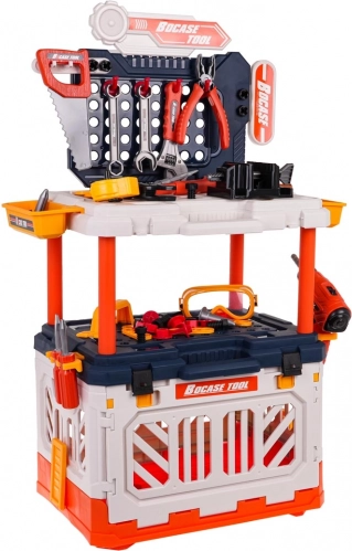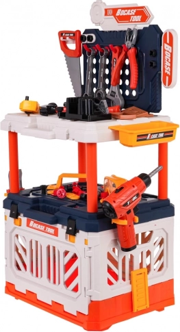 De set bevat realistisch kunststof gereedschap, zoals een boor, hamer, zaag en meer, die de verbeelding van kinderen stimuleert.
