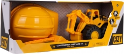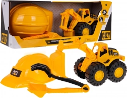 De graafmachine heeft een handmatig beweegbare bak en arm, waardoor bediening mogelijk is zoals bij een echte machine. De grote wielen van de graafmachine maken bewegen op elk oppervlak mogelijk. Er is ook een helm inbegrepen, die het gevoel van een echte bouwer geeft.