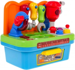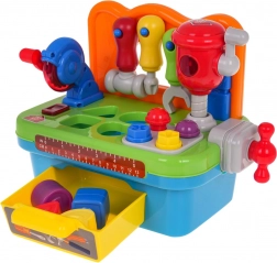 Deze multifunctionele interactieve werkbank is ideaal voor kleine doe-het-zelvers. Ondersteunt de ontwikkeling van motorische vaardigheden en stimuleert actief spel. De werkbank bevat verschillende gereedschappen die zijn aangepast voor kleine kinderhanden zoals een schroevendraaier, sleutel en hamer, die aan het plankje kunnen worden gehangen. Op het werkblad vind je een cirkelzaag met realistische licht- en geluidseffecten, evenals een bewegende hamer.