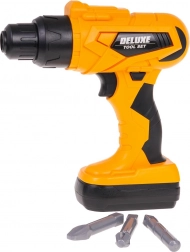 De realistische boor schroeft in en uit, maakt geluiden, heeft verwisselbare bits (plat, kruiskop, boorbit) en een afneembare accu. Voeding: 2× AA 1,5 V (niet inbegrepen).