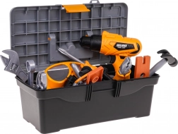 Deze kinderset met gereedschap biedt alles wat een kleine doe-het-zelver nodig heeft: een grote gereedschapskist, veiligheidsbril en masker, hamer, schroevendraaier, tangen, sleutels en bouwonderdelen met schroeven en pluggen. Dankzij hoogwaardig kunststof is de set licht, duurzaam en ideaal voor spelen als een pro.