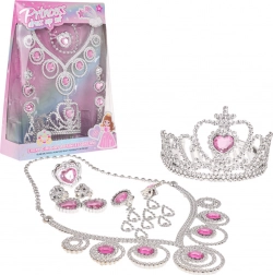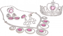 Rijk uitgeruste kinderset voor kleine prinsesjes die elk meisje verandert in de ster van een sprookjesrijk. Bevat een tiara, ketting, 4× oorbellen en een ring in zilver‑roze. Met oog voor detail vervaardigd, geschikt voor kinderen vanaf 3 jaar en geleverd in een doosje als ideaal cadeau voor verkleedspel en feestjes.