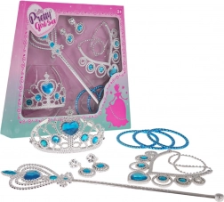 Verwen je kleine prinses met deze blauwe set: een toverstaf, tiara, ketting, oorbellen en 3 armbanden in een elegante zilver‑blauwe combinatie. Alle accessoires zijn licht en comfortabel, geschikt voor kinderen vanaf 3 jaar en ideaal als cadeau.