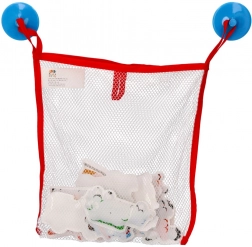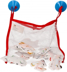 De stickers zijn zacht, liggen prettig in de hand en hechten aan gladde, natte oppervlakken (badje, tegels). Na het bad leg je ze eenvoudig in de ventilerende netzak van 23 × 27 cm, die het afvoeren van water en hygiënisch drogen bevordert.