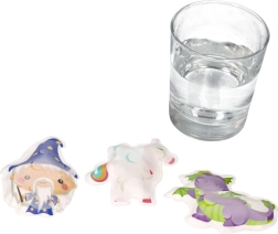 Schuimstickers met motieven van mystieke wezens veranderen van kleur wanneer ze nat worden en hechten gemakkelijk aan natte tegels of het bad. Ze stimuleren creatief spel en de ontwikkeling van de fijne motoriek.