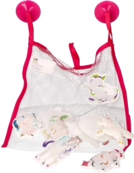 Het ademende net van 23 × 27 cm met stevige zuignappen houdt het speelgoed geordend op zijn plaats en zorgt voor snel uitlekken en hygiënisch drogen.