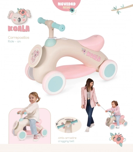 Een schattige loopfiets uit de KOALA-collectie, met veilige rit en stille wielen. Voorzien van draaibaar stuur met vingerbescherming, gerubberde handgrepen, voetensteun en een treksnoer om ouders te helpen. Licht, stabiel en ideaal voor de ontwikkeling van balans en coördinatie.