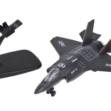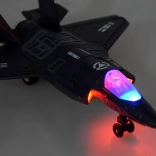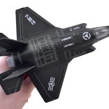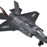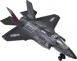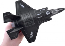 Ontdek het gedetailleerde metalen model van het militaire F-25-vliegtuig, dat duurzame afwerking combineert met aantrekkelijke functies voor kinderen vanaf 3 jaar. Na achteruit trekken rijdt het dankzij het pull-back mechanisme naar voren. Bij aandrukken op het oppervlak worden motor- en schietsounds geactiveerd en gaat de LED-verlichting in de cockpit aan, wat de realiteit van het spel vergroot.