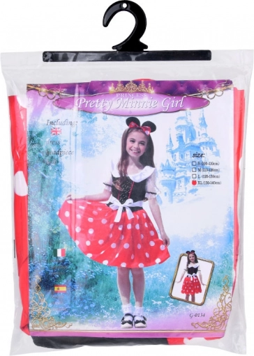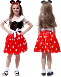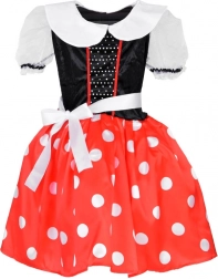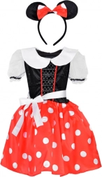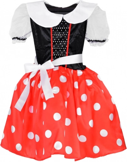 Betoverend muizenkostuum met de klassieke combinatie van rood met lichte stippen en een elegant zwart lijfje. Glanzende details op het bovendeel en gepofte mouwtjes geven de jurk een feestelijke touch, terwijl de gevoerde rok mooi in model blijft voor een perfecte “wow”-factor op elk carnaval.