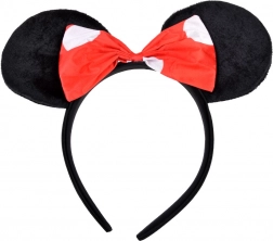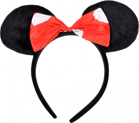De zachte haarband met pluche oortjes en rode strik maakt de outfit af en blijft stevig op het hoofd zitten.