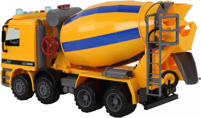 Oranje betonmixer Roterende trommel Geluid en licht Bouwvoertuig