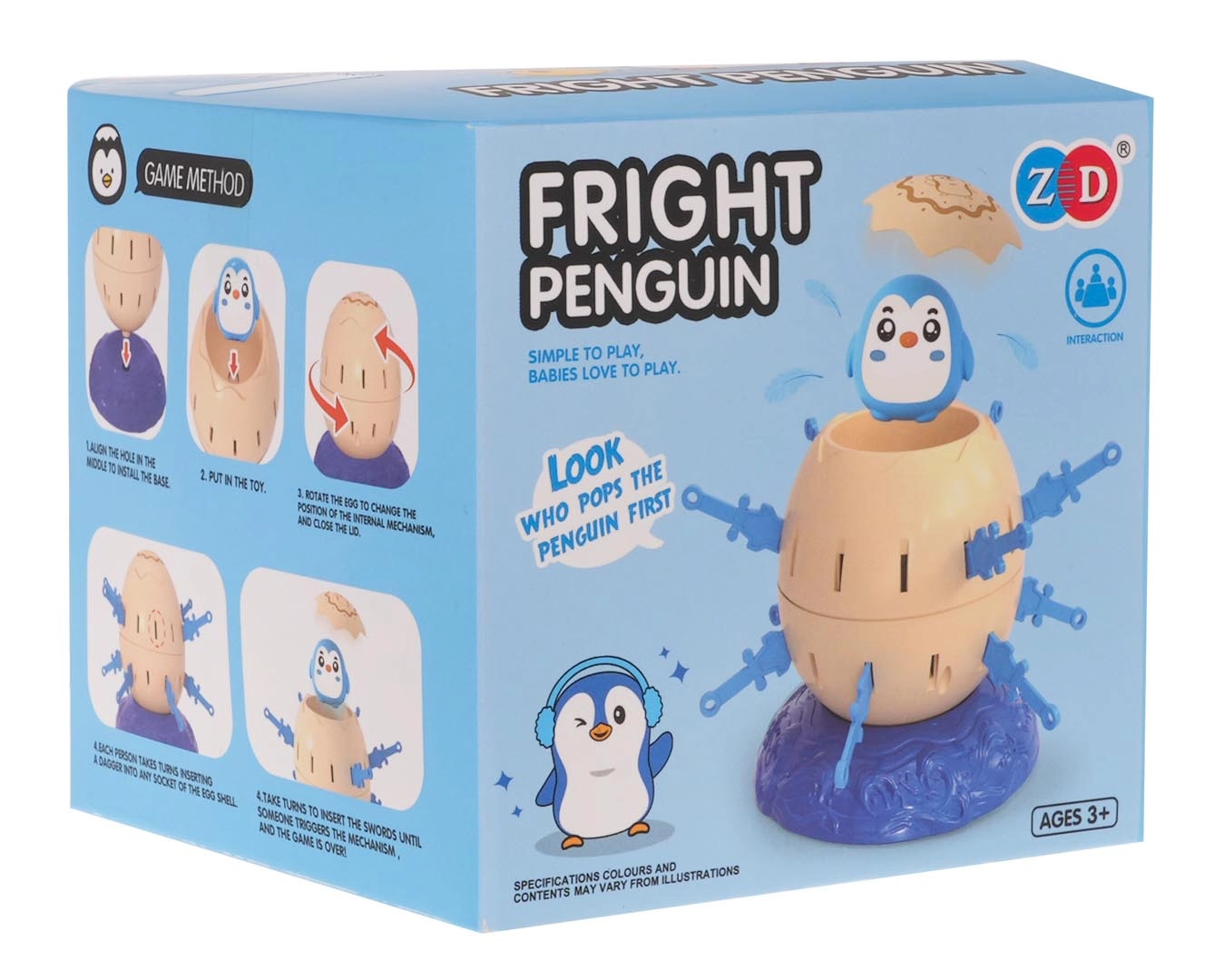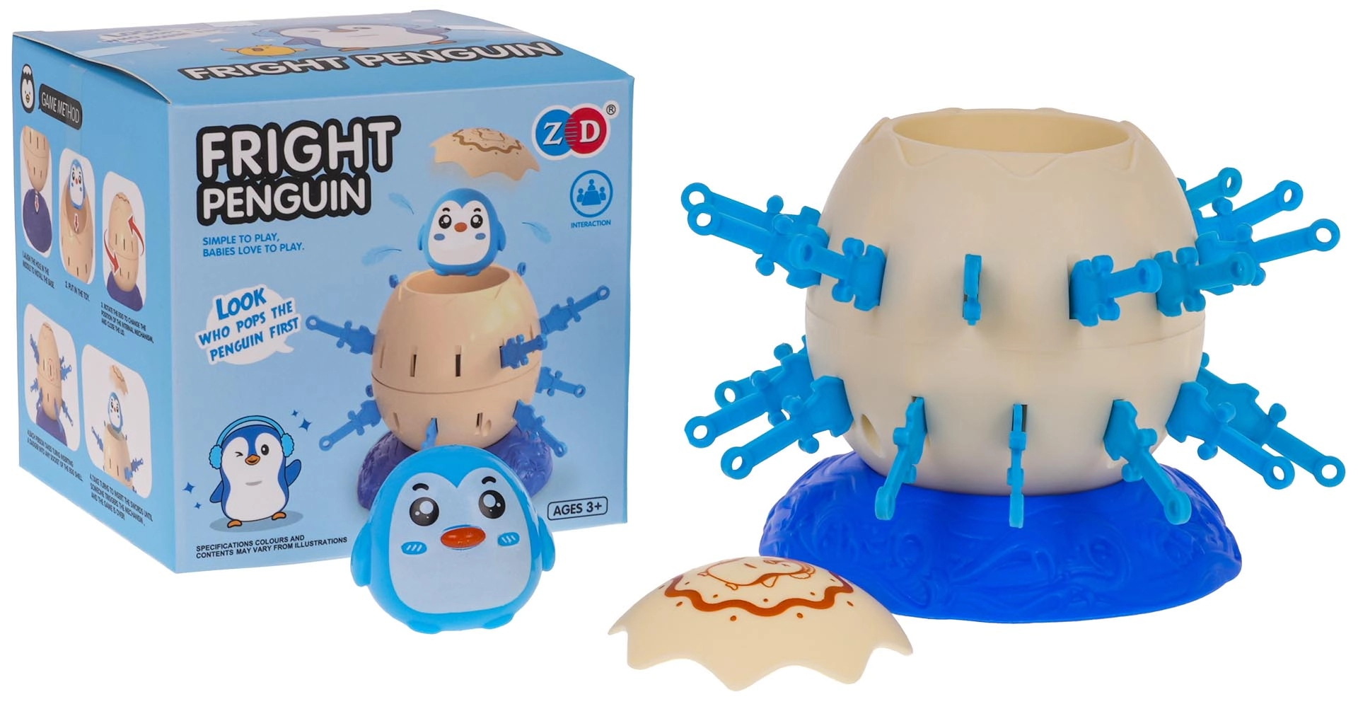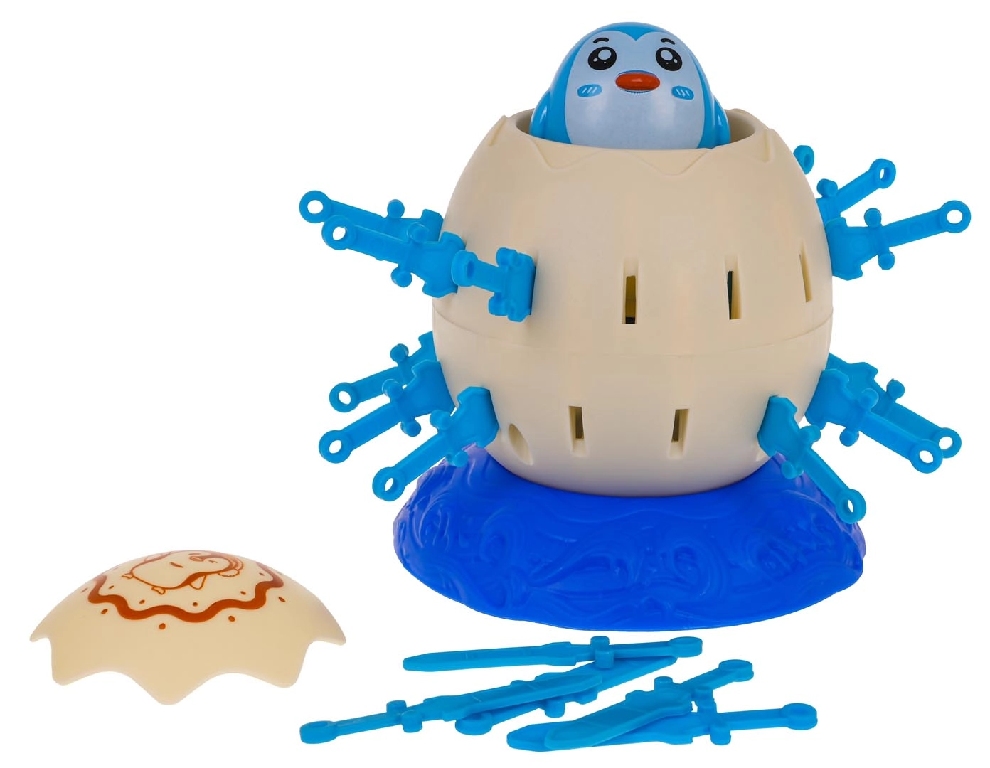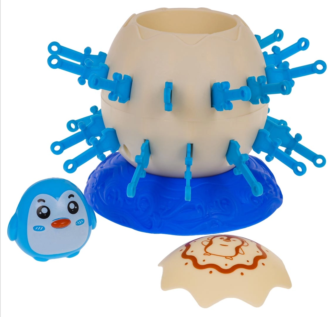 Zet het ei met de pinguïn op de voet, span het mechanisme en laat de spelers om de beurt plastic zwaarden in de openingen van het ei steken. Wie als eerste al zijn zwaarden plaatst zonder dat de pinguïn eruit schiet, wint. Eenvoudige regels, snelle rondes en veel spanning maken dit spel ideaal voor familie-avonden.