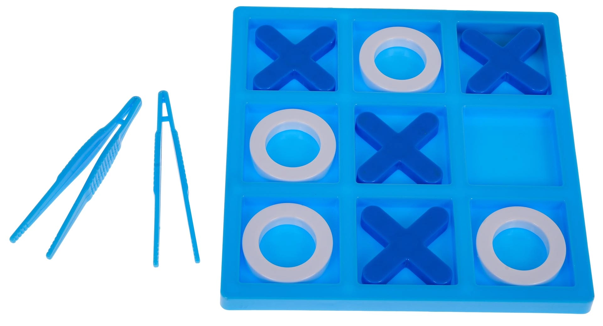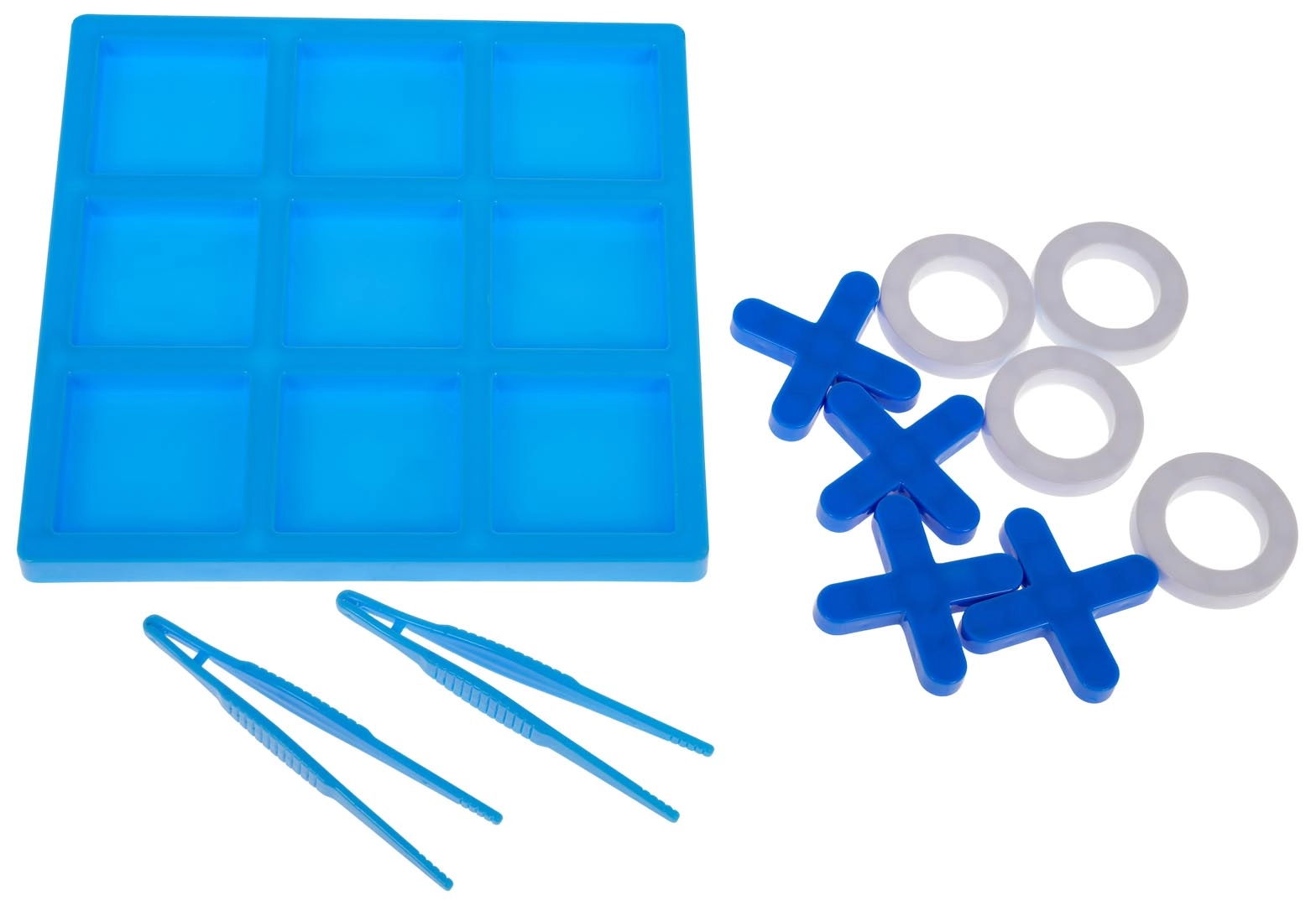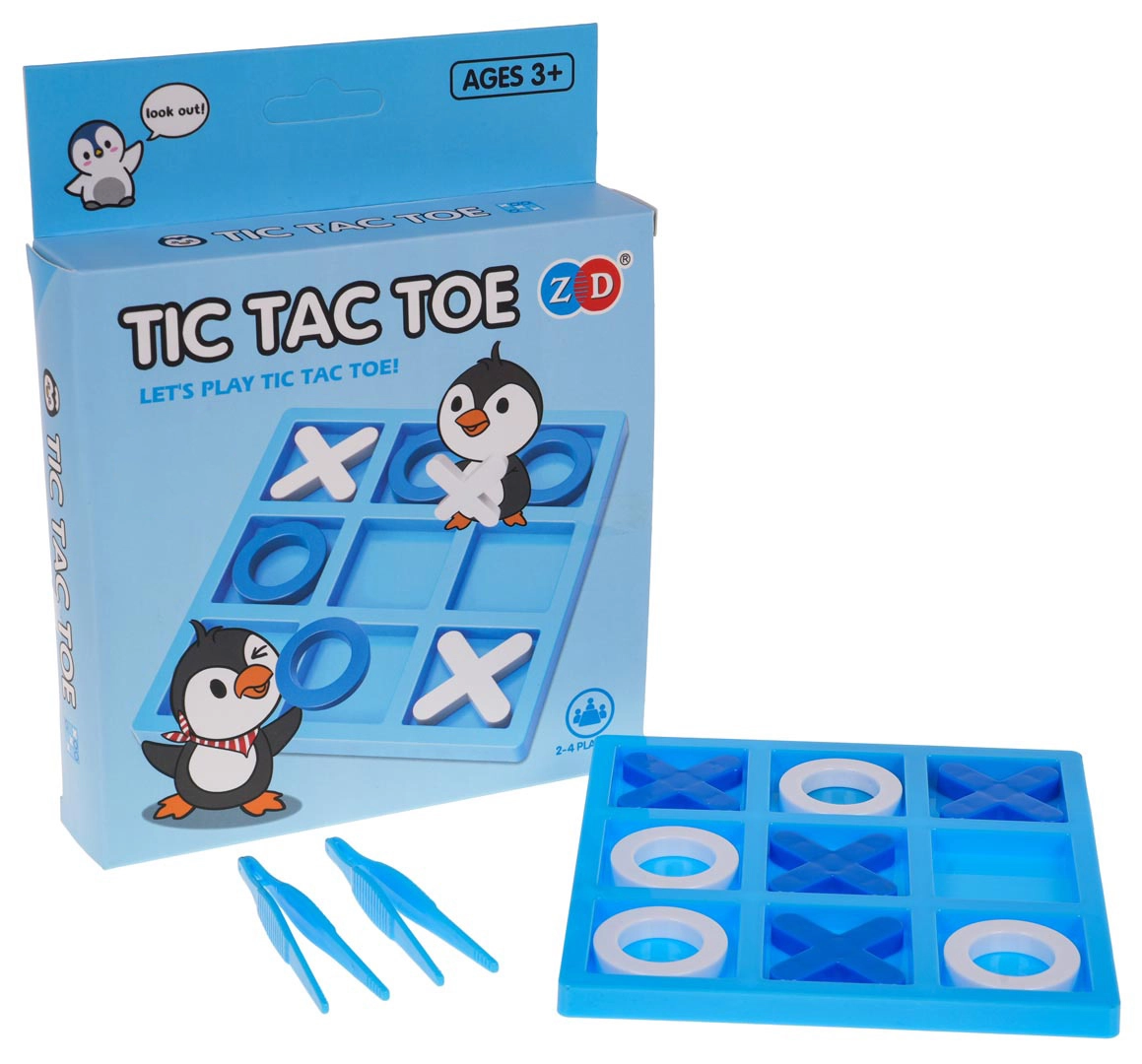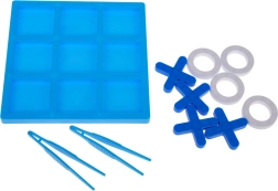 Deze miniversie van het klassieke boter-kaas-en-eieren biedt eenvoudige, slimme fun voor 2–4 spelers. Het speelbord met 9 vakken en een set rondjes en kruisjes nodigen uit tot snelle duels waarbij wint wie als eerste een rechte lijn vormt – horizontaal, verticaal of diagonaal. Twee pincetten maken het spel afwisselender en oefenen tegelijk de fijne motoriek.
