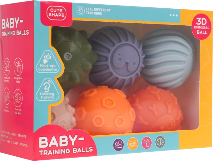 De set bevat zes verschillend gekleurde en getextureerde ballen, ideaal voor kinderen vanaf 18 maanden. Het kleurrijke palet en de diverse vormen stimuleren creatief spel en ontwikkelen de zintuiglijke waarneming van kinderen.