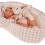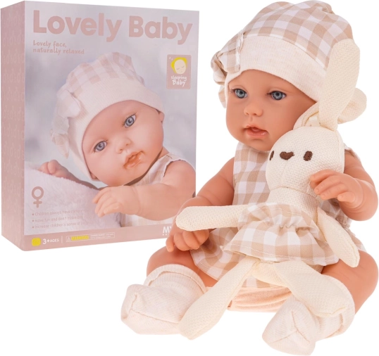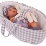 Schattige babypop met een zachte draagmand en een pluchen konijntje, leuk voor ieder kind vanaf 3 jaar. De set is hoogwaardig afgewerkt, heeft beweeglijke armen, benen en hoofd, makkelijk uit te tr... Meer tonen