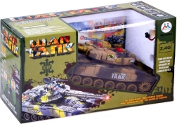 Deze op afstand bestuurbare tank biedt een meeslepende gevechtservaring: bij een nauwkeurige treffer hoor je het geluid van het geraakt doel en dooft het controlelampje aan de achterkant van de tegenstander. Na drie treffers is de tegenstander circa 30 seconden uitgeschakeld. De draaibare koepel maakt vuren in 360° mogelijk en de gekleurde LED-verlichting ziet er ook in het donker geweldig uit.