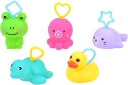 De set bevat vijf kleurrijke diertjes die vreugde en plezier brengen tijdens het baden.