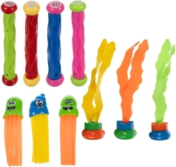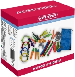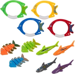 Geniet van de zomer met deze grote set duikspeelgoed voor in het zwembad! Kleurrijke vissen, ringen, staafjes, haaien-torpedo’s en piratenschat maken van elk zwemmoment een avontuur. De speeltjes zinken snel naar de bodem, zijn goed zichtbaar en veel onderdelen hebben puntwaarden voor wedstrijden. Inclusief een lichte, sneldrogende draagzak voor gemakkelijk meenemen.