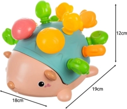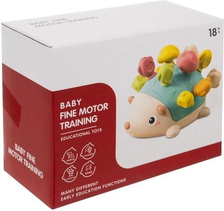 Het oppervlak van de egel combineert verschillende texturen (glad, bol, met openingen) die de tastzin stimuleren en cognitieve vaardigheden ondersteunen. Hoogwaardige ABS is duurzaam en veilig, bevat geen schadelijke stoffen en is gemakkelijk schoon te maken.