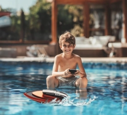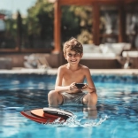 De geïntegreerde sensor activeert de boot alleen bij contact met water. Beschermt de elektronica en is geschikt voor kinderen.