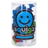 Fat Brain leuke zuignappen Squigz starterpack. De verpakking bevat 22 stuks zuignappen in verschillende kleuren, types en groottes. De grootte van één stuk is ongeveer 6 cm in diameter.