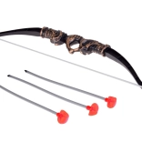 De boog met een lengte van 44 cm is ideaal om het “boogschieten” te oefenen met veilige pijlen van 24 cm, speciaal ontworpen voor kinderspel. De koker met afmetingen 13 x 9 cm maakt de ridderlijke look compleet.