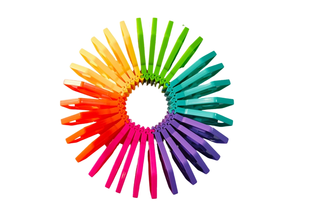 De veerarmband is een uniek sensorisch speeltje dat de ontwikkeling van de creativiteit en verbeelding van kinderen stimuleert. Ideaal voor het prikkelen van de tastzin en het bevorderen van motorische coördinatie.