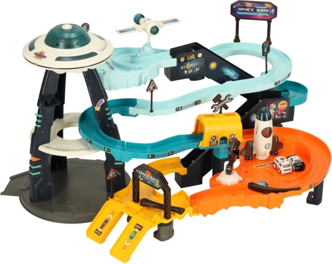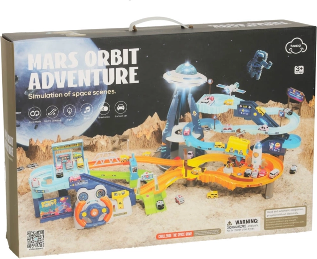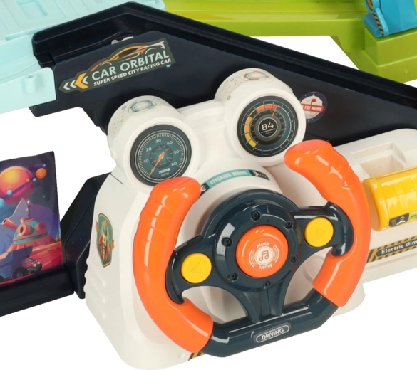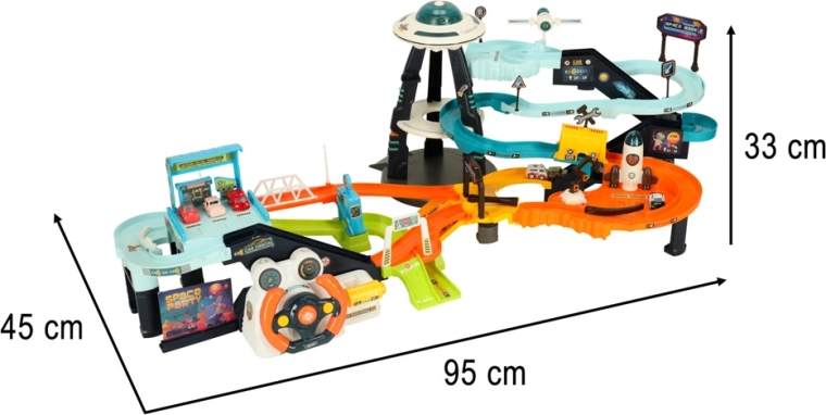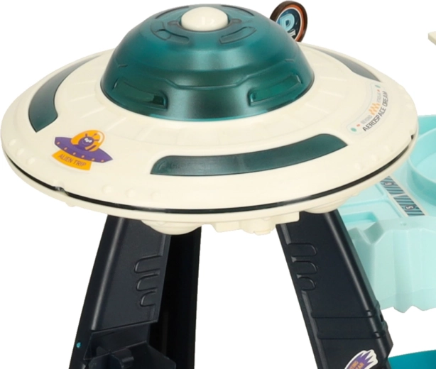 De futuristische UFO toren vormt het centrum van de baan, en licht op en maakt geluiden aan wanneer ingeschakeld, wat bijdraagt aan de sfeer van de ruimtescène. Deze set niet alleen vermaken, maar ook ontwikkelt motorische vaardigheden, coördinatie en verbeeldingskracht van kinderen en brengt ze in een fascinerende wereld vol avonturen!