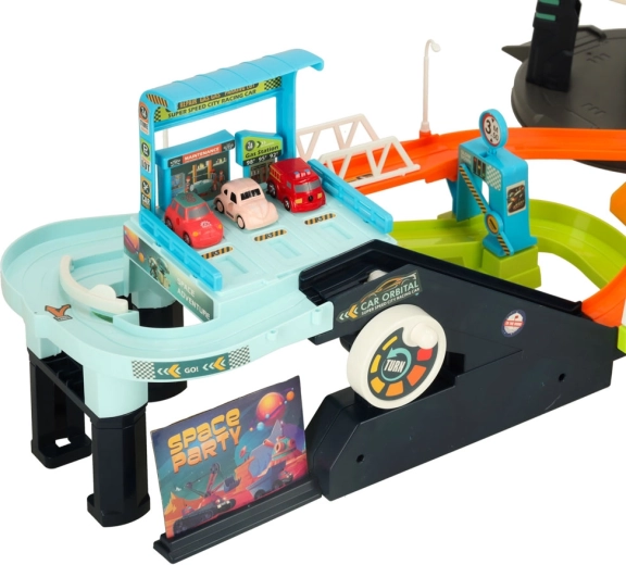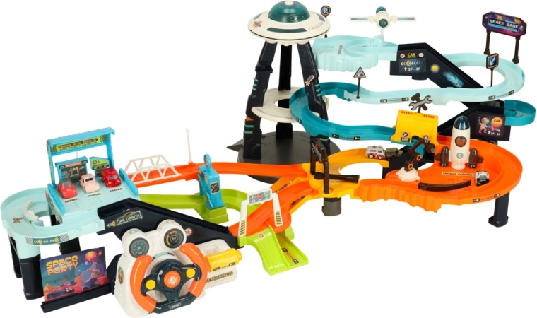 Dompel jezelf onder in een ruimterijk vol avonturen, waar de racebaan twee verschillende configuraties biedt - kinderen kunnen individuele banen maken of ze verbinden tot één lange baan vol bochten en afdalingen. Het doordachte ontwerp ondersteunt de creativiteit van kinderen en maakt verschillende spelscenario's mogelijk.