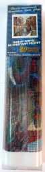 Inhoud van de verpakking: canvas met voorgedrukt beeld, pen voor het aanbrengen van steentjes, schaaltje om steentjes in uit te strooien, was voor het plakken, set gekleurde steentjes.