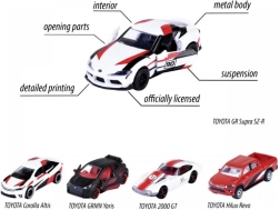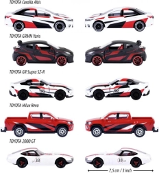 Deze cadeauset zal elke fan van autosport en het merk TOYOTA verheugen. In de verpakking vind je vijf legendarische modellen – GR Supra, GRMN Yaris, Hilux Revo, Corolla Altis en 2000 GT – in een uniform racedesign. Metalen carrosserieën, gedetailleerde prints en functionele openende onderdelen geven de autootjes een realistische uitstraling.