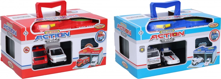Een leuk draagbaar station met twee voertuigen dat kleine fans van hulpdiensten zal verrassen. De set biedt twee themavarianten – brandweer en politie – en combineert metalen en kunststof auto’s voor duurzaam en langdurig speelplezier.