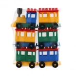 De bouwset biedt een felgekleurde locomotief en vijf wagonnetjes. Deze kleuren trekken de aandacht en stimuleren de creativiteit van kinderen.