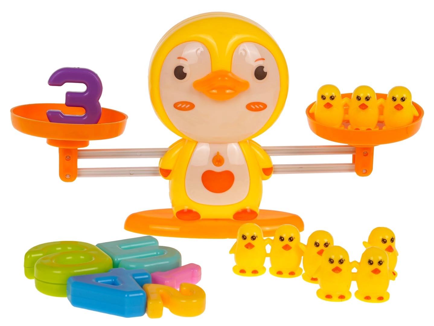 Dit slimme spel combineert leren met spelen. Kinderen leggen aan de ene kant van de weegschaal cijfers en aan de andere kant het overeenkomstige aantal eendjes, zodat de weegschaal in evenwicht blijft. Zo begrijpen ze op een natuurlijke manier het principe van optellen en aftrekken, het vergelijken van gewichten en de werking van een tweearmige weegschaal.