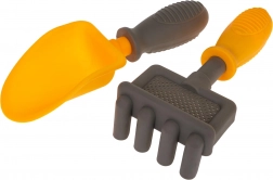 In de set vind je ook een harkje en schepje. Deze gereedschappen stellen kinderen in staat om creatief te spelen en hun bouwvaardigheden in zand of grind te ontwikkelen.