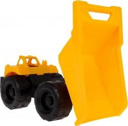 Het bouwvrachtvoertuig is uitgerust met grote draaiwielen en een beweegbare laadbak voor echt interactieve spelletjes.