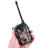 Kindercommunicatieset met centrale en twee walkietalkies biedt leuk contact tot een afstand van 150–200 m in open terrein. Een duurzame flexibele antenne, eenvoudige bediening en robuuste uitvoering met militair design zorgen voor veilige en creatieve speelpret in de tuin, op het strand en in het bos.